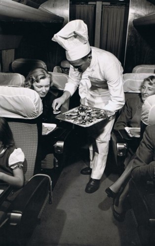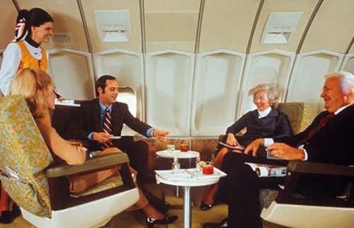 Uit onderstaande fotoserie valt op te maken dat het vroeger helemaal zo slecht niet was. Ok, vliegen was wel echt alleen voor de elite gezien de klederdracht. Onderuit gezakt in je joggingpak een lange vlucht maken zat er niet in. Maar de chef kok die je een fantastische maaltijd voorschotelt en gezellig spelletjes spelen onderweg, dat is toch echt wel veranderd.