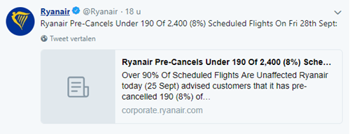 Het rommelt nog steeds bij Ryanair en nieuwe grootschalige stakingen zijn reeds aangekondigd door de piloten van Ryanair. Aanstaande vrijdag 28 september 2018 wordt in Nederland, België, Spanje, Italië en Portugal het werk neergelegd. Gisteren (dinsdag 25-09-2018) zijn hierdoor 190 vluchten geannuleerd van Ryanair.